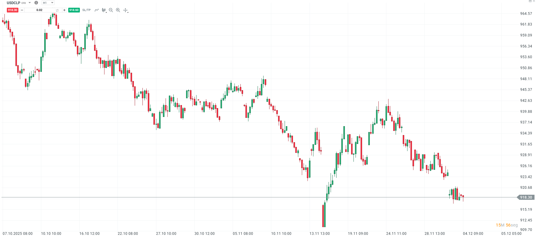 Bajo estas condiciones, el diferencial de tasas con EE.UU. se vuelve menos desfavorable, lo que permitiría que el tipo de cambio se mantenga dentro de un rango estrecho entre $915 y $924, en un equilibrio entre un dólar global más débil y un cobre que realiza una pausa sin modificar su tendencia alcista de fondo.