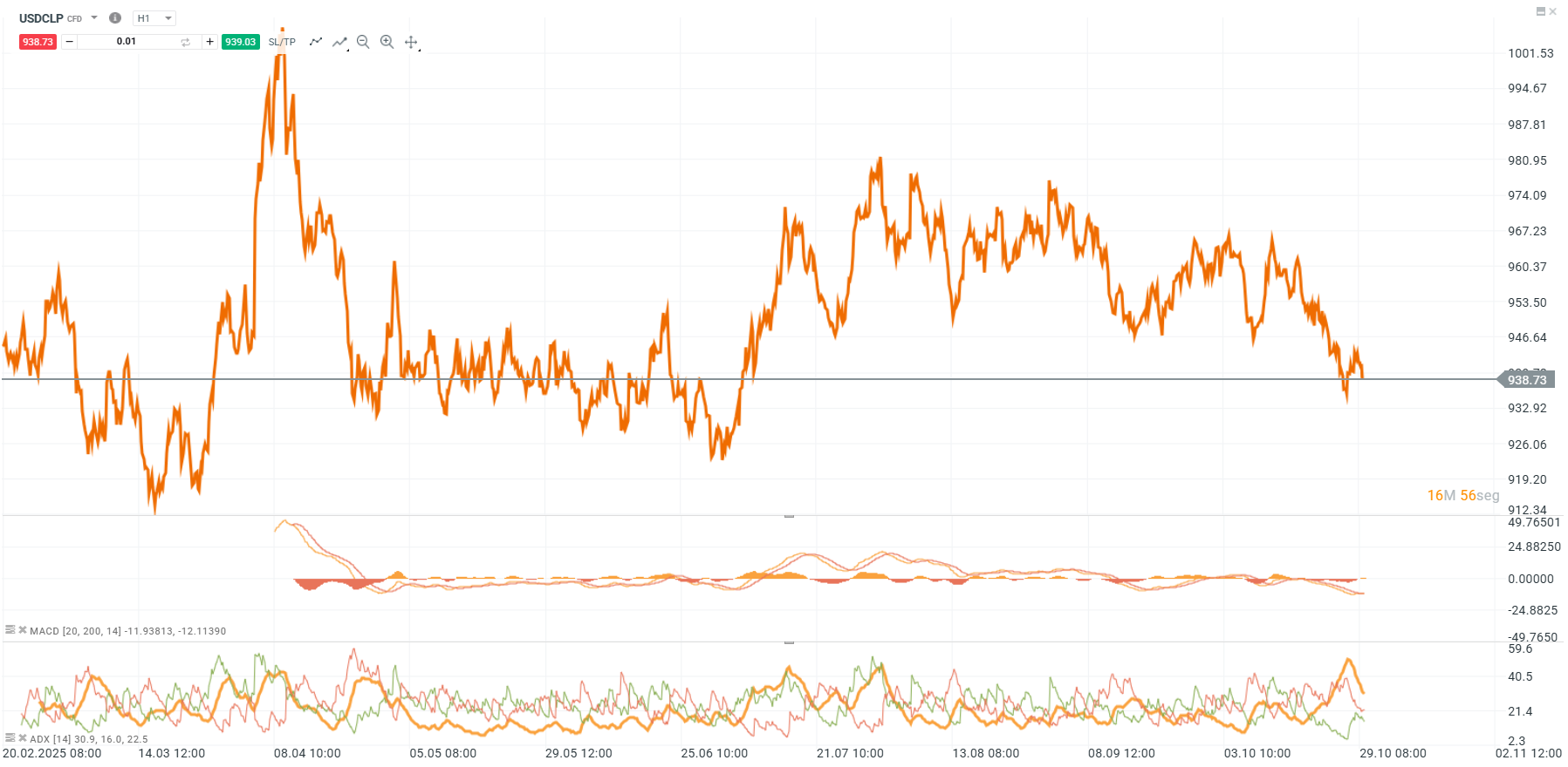 Desde el punto de vista técnico, el gráfico muestra una ruptura de soporte en la zona de los 940 pesos, con una proyección bajista que podría llevar al tipo de cambio hacia niveles más bajos en caso de confirmarse la tendencia. La figura de consolidación lateral observada en las últimas semanas ha dado paso a una presión vendedora, como lo demuestra el quiebre del soporte destacado en la imagen.