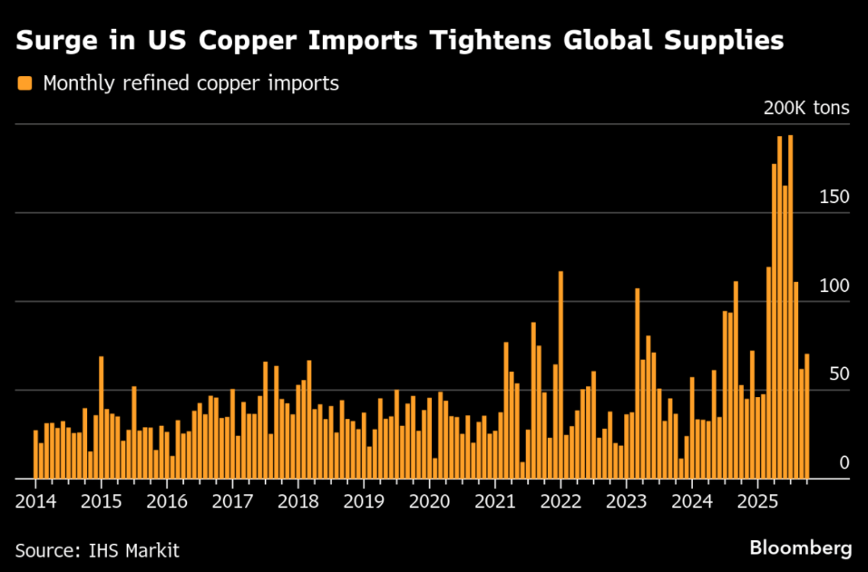 A este cuadro se suma el componente geopolítico y comercial. La amenaza de aranceles de importación en Estados Unidos ha empujado a traders y consumidores industriales a adelantar embarques y mover volúmenes hacia puertos estadounidenses para anticiparse a eventuales gravámenes. Este comportamiento no crea demanda global nueva, pero sí estrecha la disponibilidad de cobre fuera de Estados Unidos, reforzando el premio por inmediatez y elevando precios en otras plazas.