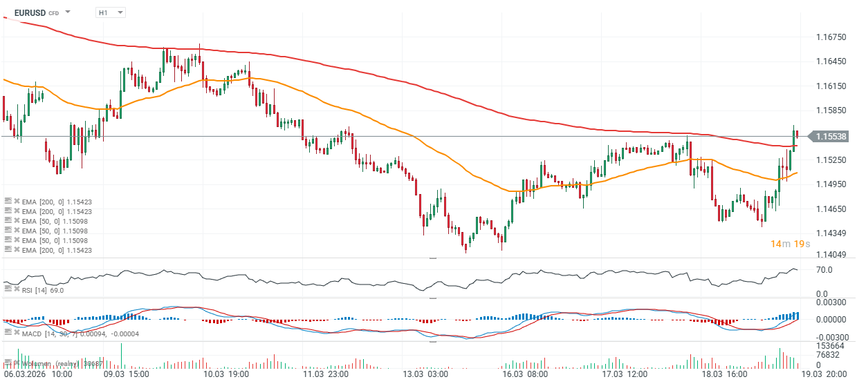 El euro frente al dólar registra un fuerte rebote iniciado antes de la decisión del Banco Central Europeo (BCE), y actualmente sube más de 0.8% por encima de 1.155 tras el anuncio. El movimiento está respaldado por la caída de los precios del petróleo, que retroceden desde $111 hasta $104 por barril, y por la debilidad del dólar estadounidense, con el índice dólar (USDIDX) cayendo más de 0.8%.