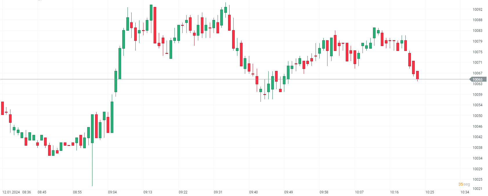 Gráfico de un minuto del Ibex 35. Fuente: xStation5