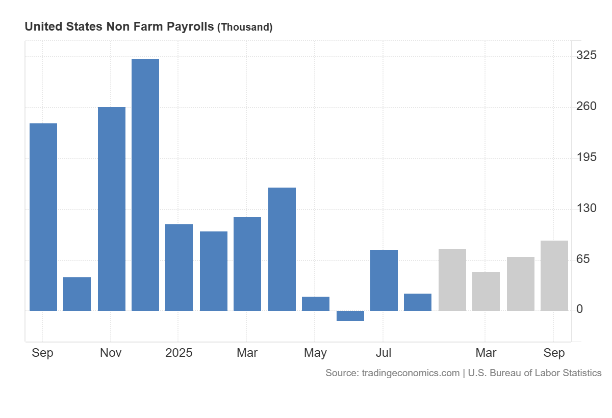 El mercado estadounidense enfrenta hoy una de las jornadas más relevantes del mes con la publicación del informe de empleo de septiembre, un documento que llega con casi dos meses de retraso, pero que, pese al desfase, será la última lectura completa del mercado laboral disponible para la Reserva Federal antes de su reunión de diciembre.