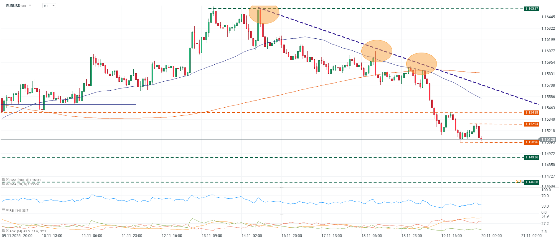 EUR/USD presionado, camino a 1.1500 o incluso 1.1460.