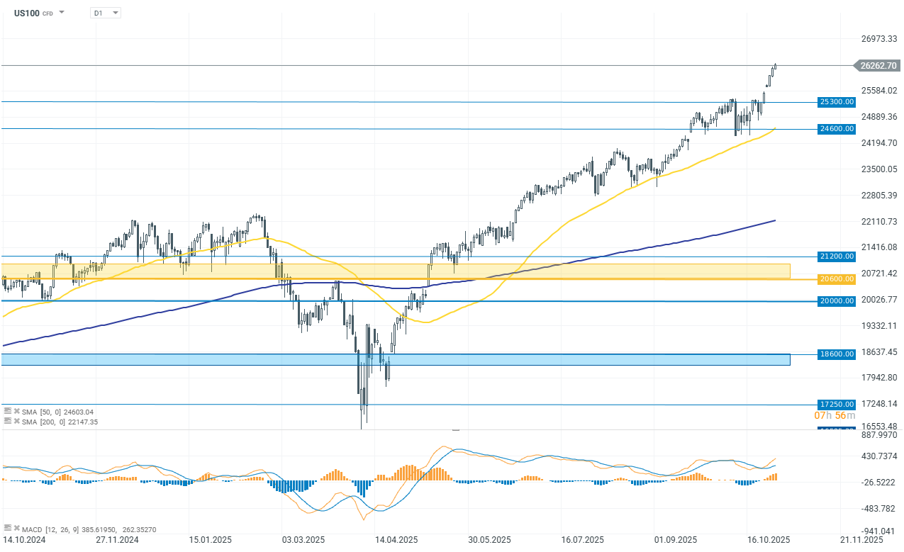 Este material ha sido elaborado por XTB. Su contenido tiene fines exclusivamente informativos y no constituye, en ningún caso, una asesoría personalizada ni una recomendación de inversión sobre instrumentos, mercados o estrategias específicas. La información aquí contenida no considera los objetivos, la situación financiera ni el perfil de riesgo de ningún inversionista en particular. Antes de invertir en cualquier instrumento financiero, le recomendamos informarse sobre los riesgos involucrados y verificar si el producto es adecuado para su perfil. El desempeño pasado no garantiza resultados futuros. Toda decisión de inversión basada en este material será responsabilidad exclusiva del inversionista. XTB Agente de Valores SpA no se hace responsable por pérdidas directas o indirectas, incluidos daños patrimoniales o pérdida de beneficios, derivados del uso o confianza depositada en esta información.
