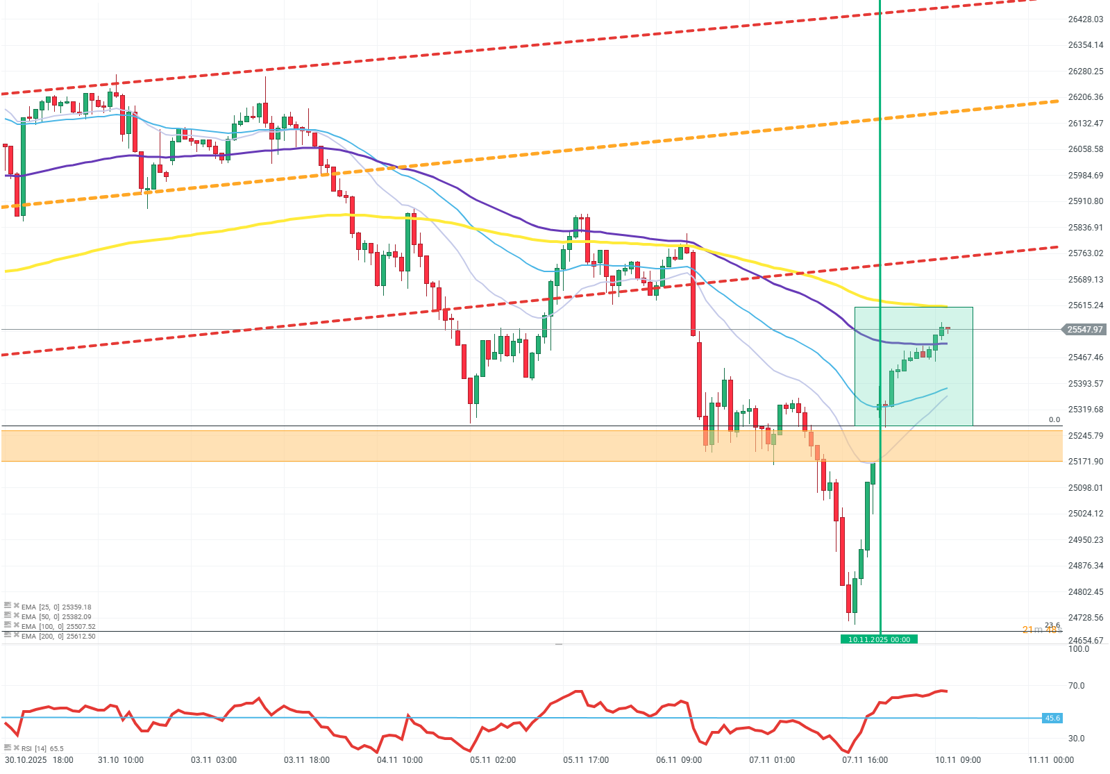 Los futuros del Nasdaq 100 suben alrededor de un 1,5% hoy antes de la apertura del mercado estadounidense, recuperando parte de las recientes pérdidas ante la mejora del clima de confianza en torno al cierre parcial del gobierno de EE. UU.