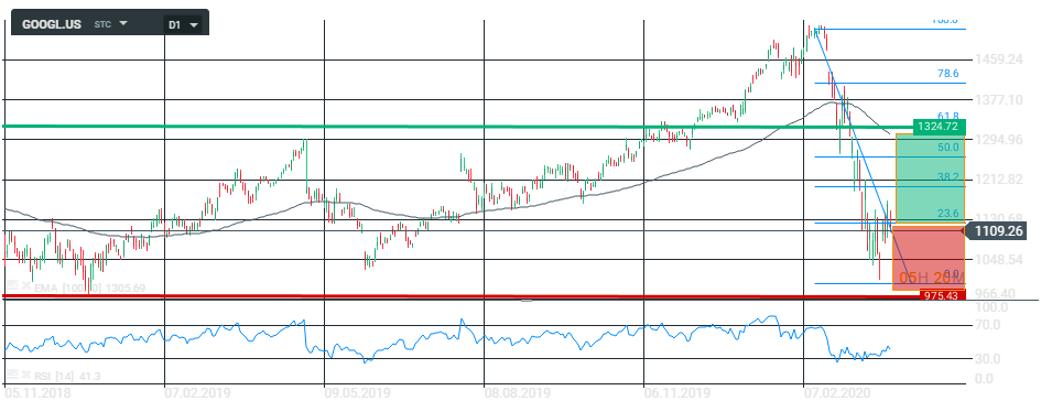 El efecto que ha provocado el virus en las bolsas ha hecho que valores como Alphabet Ibc hayan realizado un fuerte movimiento correctivo, sus acciones pasaron de registrar máximos históricos por encima de los 1500$ en febrero hasta el mínimo cercano a los 1000 $ en aproximadamente un mes. El valor de las acciones ha perdido en torno al 35%. Ahora la cotización ha rebotado hasta los 1109 $ en los que cerró el pasado viernes, gracias en parte a los estímulos monetarios anunciados por la FED.