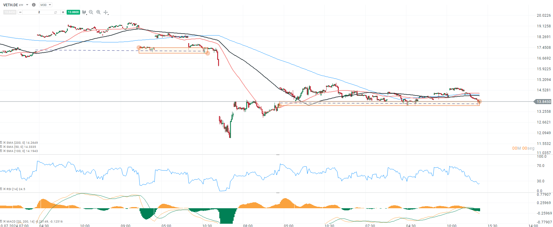 La debilidad de Bitcoin, a pesar de las importantes caídas del índice del dólar y de los rendimientos, está ejerciendo cierta presión sobre Ethereum, que ha bajado casi un 4,5% hoy. La segunda criptomoneda más importante no ha despertado mucho interés por parte de los "especuladores alcistas" últimamente, ya que el mercado de criptomonedas sigue tenso antes del próximo impulso de volatilidad de Bitcoin, que ha perdido casi un 5% desde el lunes y está probando el nivel de 61.500 dólares hoy. En total, más de 2.000 millones de dólares han fluido hacia los ETF de Ethereum de EE. UU., y solo iShares (BlackRock) ha recaudado más de 1.000 millones de dólares en entradas netas