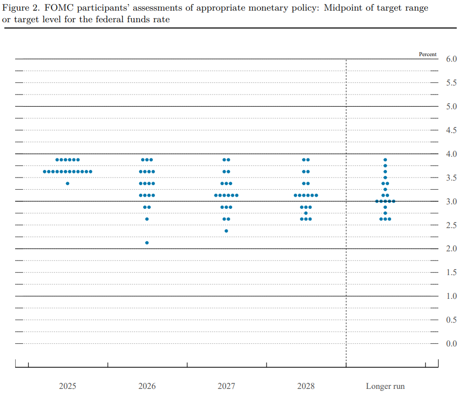 - Pronóstico Mediano de la Tasa de la Fed (Largo Plazo): 3% (Pronóstico 3.125%, Previo 3%)