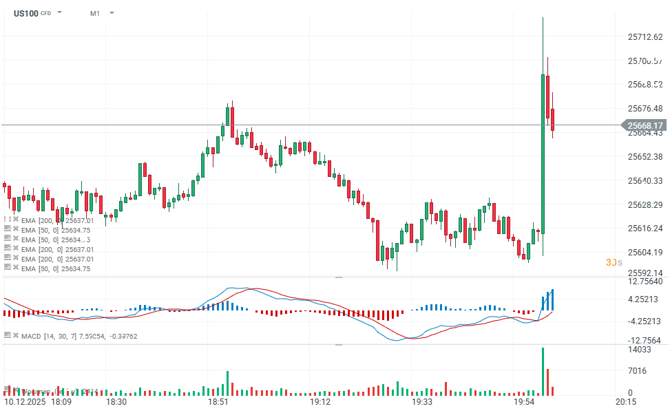 - La Fed recorta la tasa en 25 pb y mantiene un sesgo moderado, mientras el Nasdaq 100 reacciona con alzas y las proyecciones sugieren un ciclo de recortes más gradual hacia 2026.
