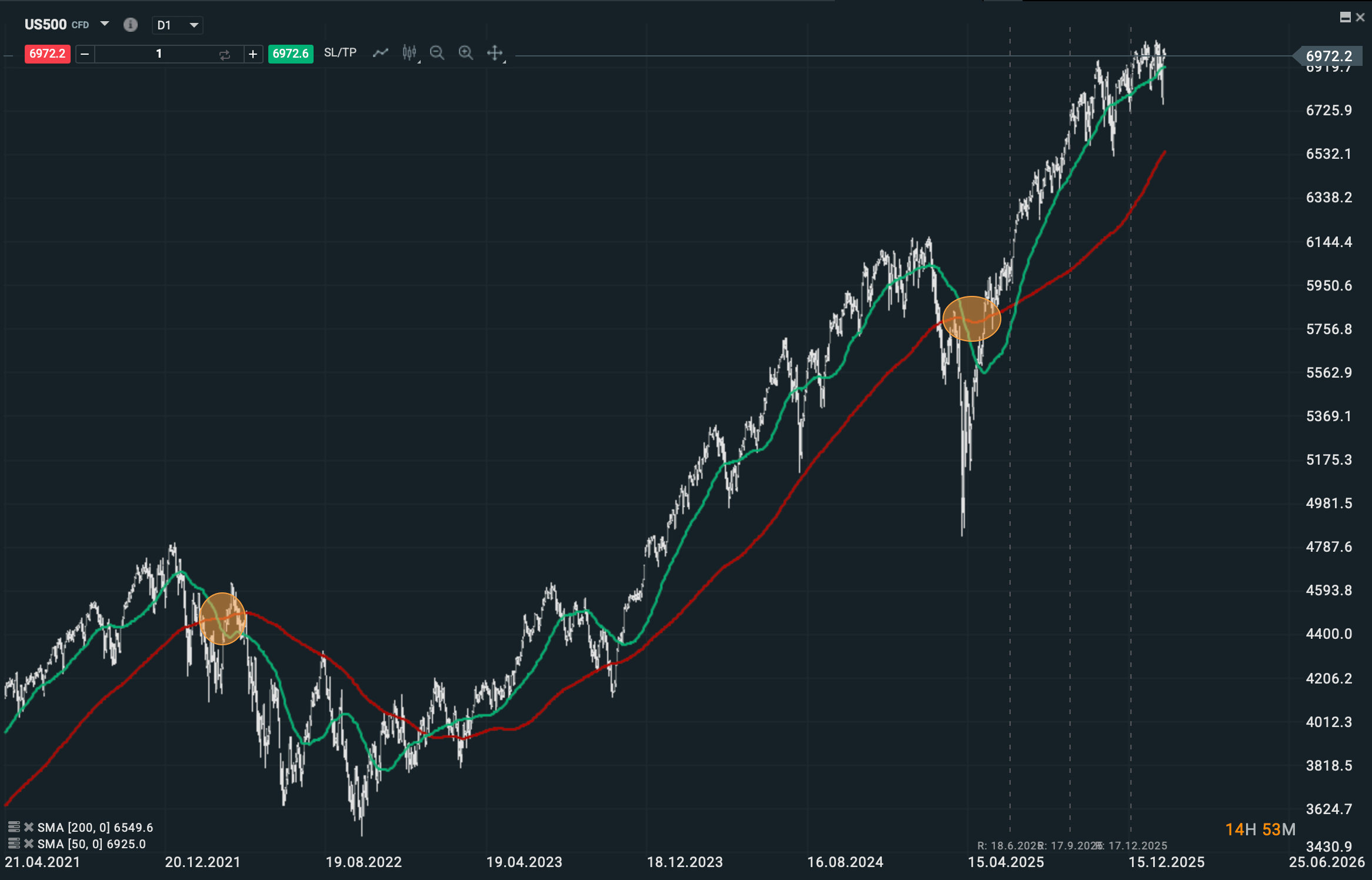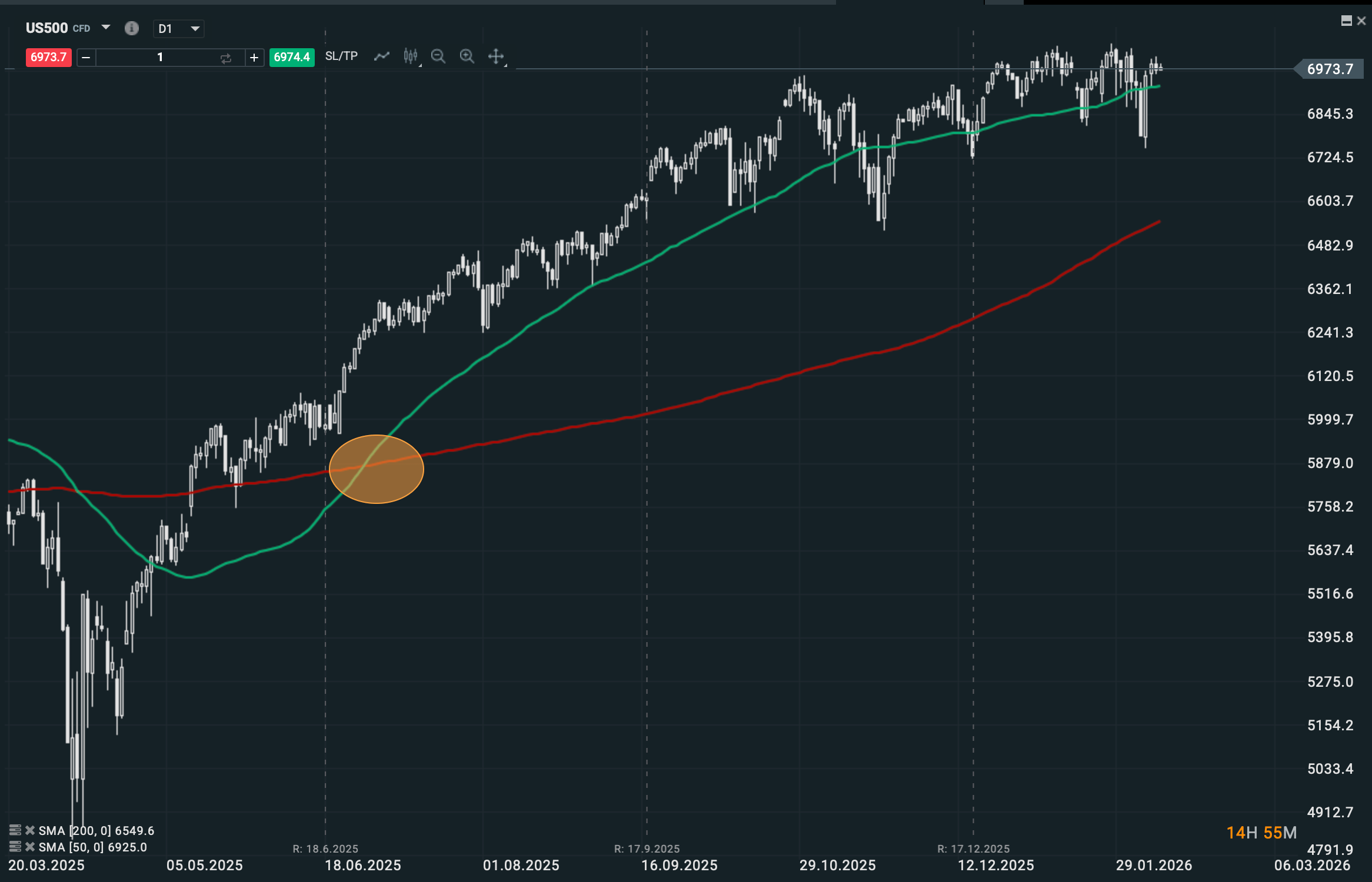 Cruce de medias móviles (Golden Cross). Fuente: xStation5