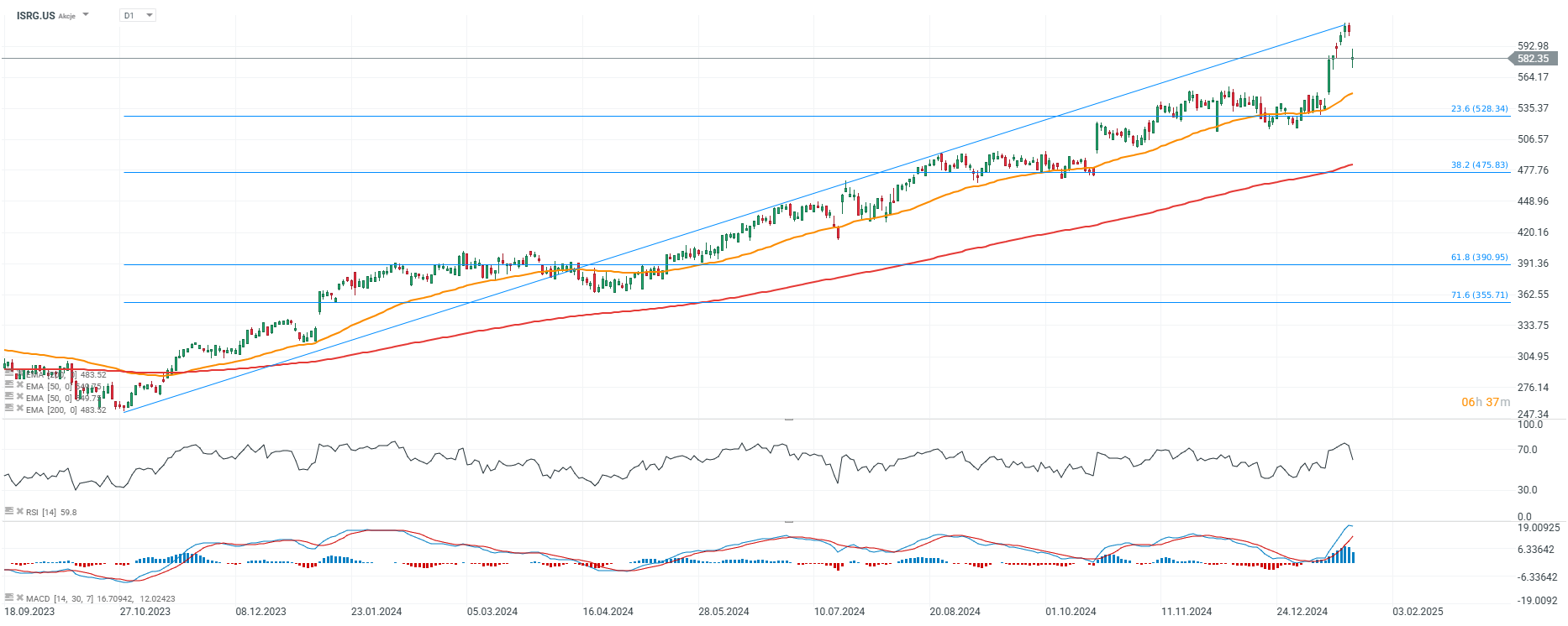 Las acciones de Intuitive Surgical (ISRG.US) están cayendo un 5% después de sus resultados financieros del cuarto trimestre de 2024, a pesar de que la compañía superó las previsiones de ingresos y beneficios por acción. Parte de la razón de la disminución fue que la compañía espera que las operaciones de 2025 crezcan entre un 13% y un 16% interanual, por lo que está por debajo de la tasa de crecimiento del 17% en 2024. Los analistas esperaban un crecimiento del 17,1% en 2025. La compañía instaló tantos Se vendieron 174 robots Da Vinci 5 en EE. UU. en el cuarto trimestre, frente a los 110 del tercer trimestre de 2024, pero las estrategias de precios en el mercado chino arrojaron resultados más débiles de lo esperado.