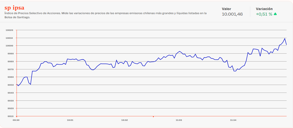 En la sesión, Aguas Andinas (+2.7%), Ripley(+2.2%) y Entel (+2.1%) lideran las alzas, reflejando un avance amplio y no concentrado, característico de los ciclos en los que el mercado comienza a ser revalorizado por su conjunto y no por apuestas específicas.