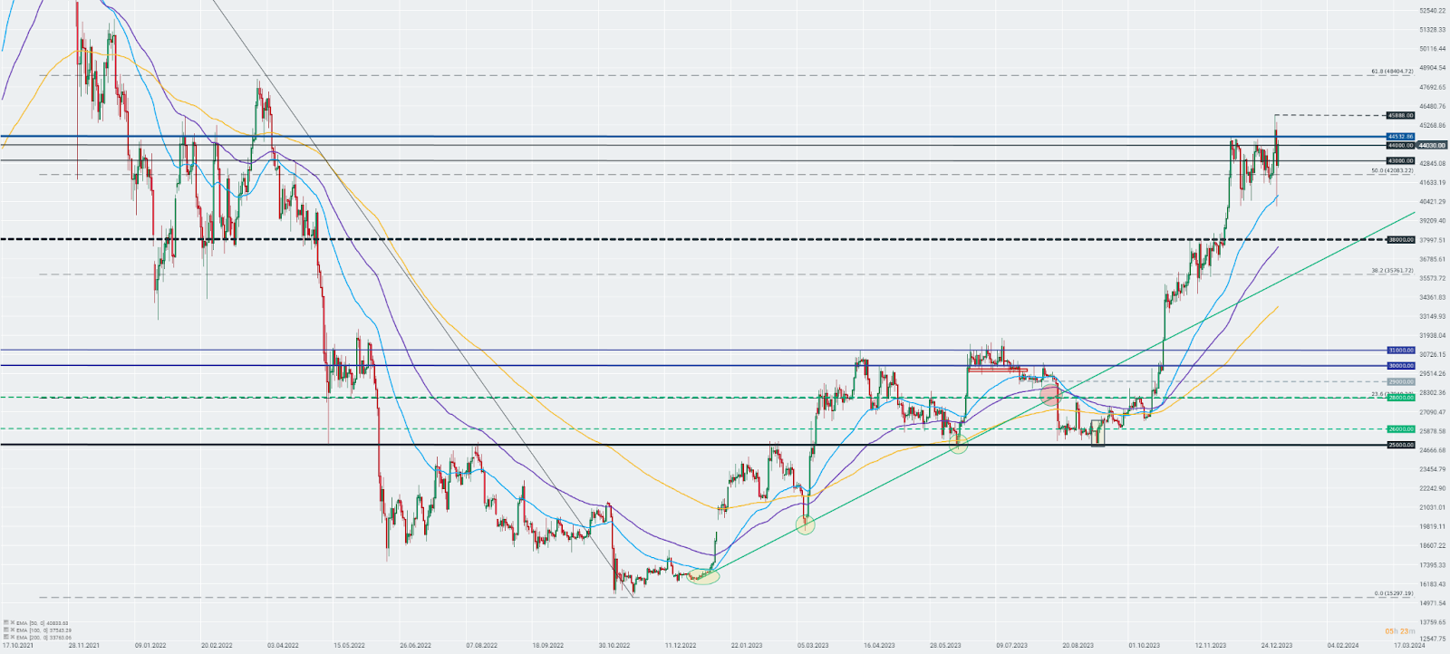 Bitcoin ha vuelto a superar la zona de 44.000 dólares, que tuvo una fuerte ruptura ayer. A nivel intradiario, la criptomoneda ya está subiendo más del 3%, y la clave ahora podría ser si BTC logra mantenerse por encima de la zona mencionada anteriormente. Fuente: xStation