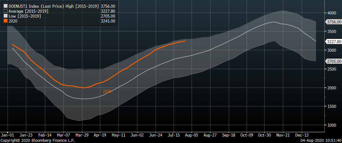 - Los inventarios de Gas en los EE.UU. Permanecen muy por encima de la media de 5 años en este momento.