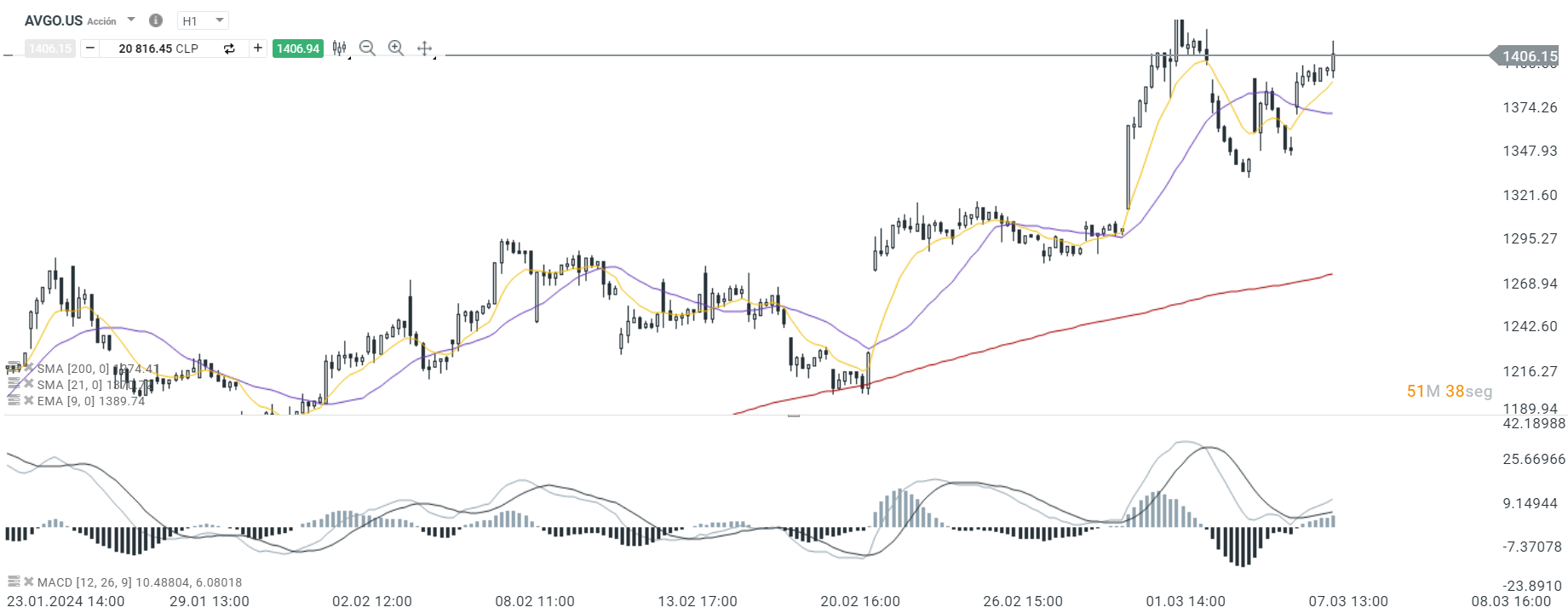 Las acciones de Broadcom (AVGO.US) subieron más de un 3,00% mientras el mercado esperaba sus resultados trimestrales, con expectativas fijadas en unos beneficios de 10,42 dólares por acción y unos ingresos de 11,720 millones de dólares.