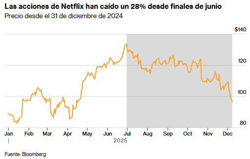 Netflix atraviesa su peor tramo bursátil en meses. La compañía, que ya enfrentaba dudas por su propuesta de adquisición de Warner Bros. Discovery, se enfrenta ahora a riesgos aún más elevados.