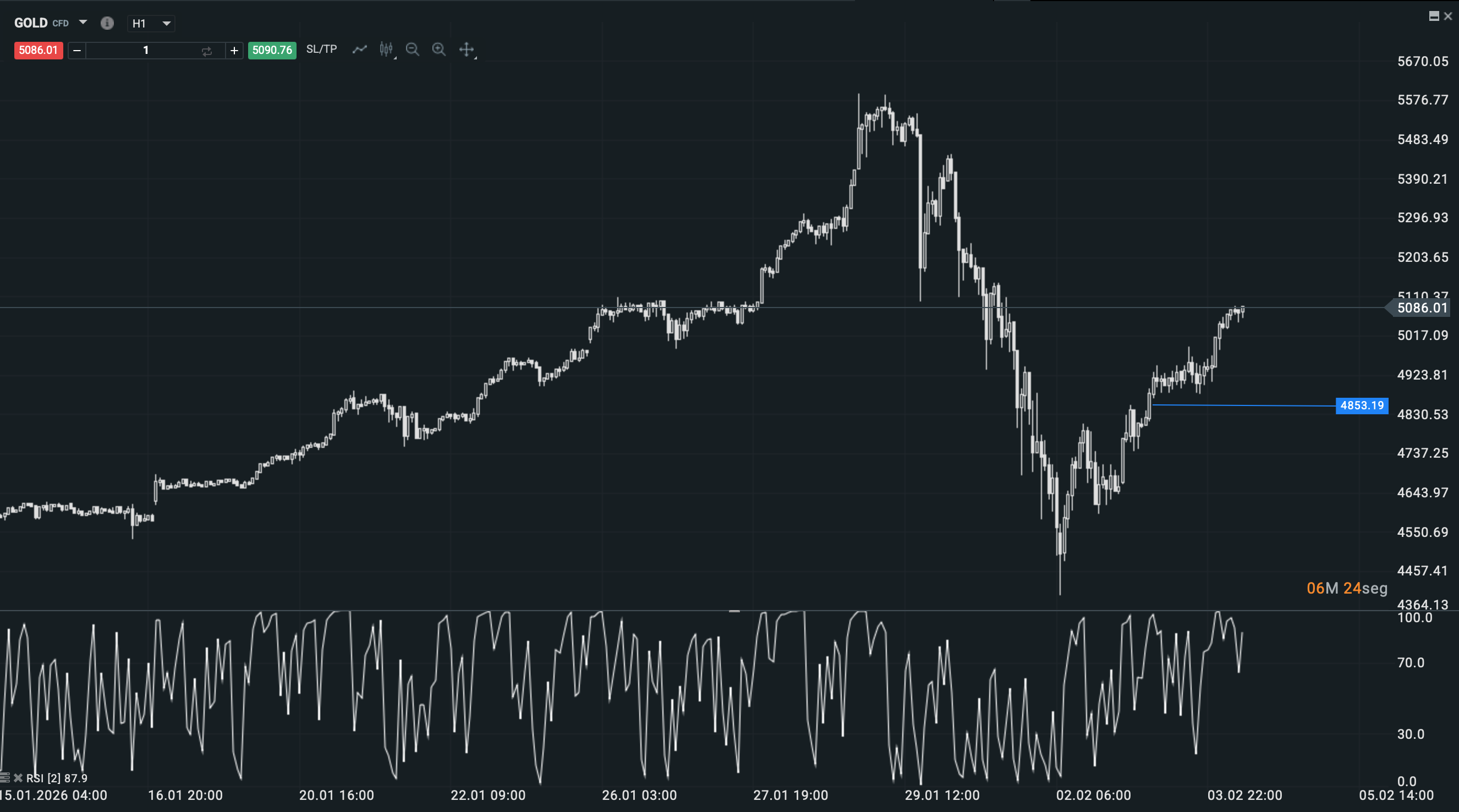 Tras la caída de principios de febrero, los metales preciosos rebotaron de forma significativa: el oro repuntó más de un 3% y la plata un 5,3% el día 3. A corto plazo, podemos dos niveles a vigilar: 4.853 dólares para el oro y 82,19 dólares para la plata. Mientras se mantengan por encima de estos soportes, muchos consideran que el sesgo sigue siendo alcista. Perderlos podría abrir la puerta a una corrección más profunda, pero no anularía los fundamentos de largo plazo.
