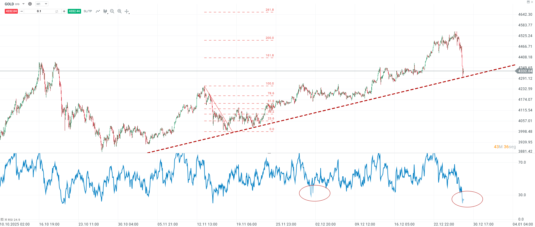 El oro superó por primera vez los US$4.400–4.500 por onza a fines de diciembre de 2025 y acumuló un alza aproximada de 70–75% en el año, su mayor subida desde 1979.