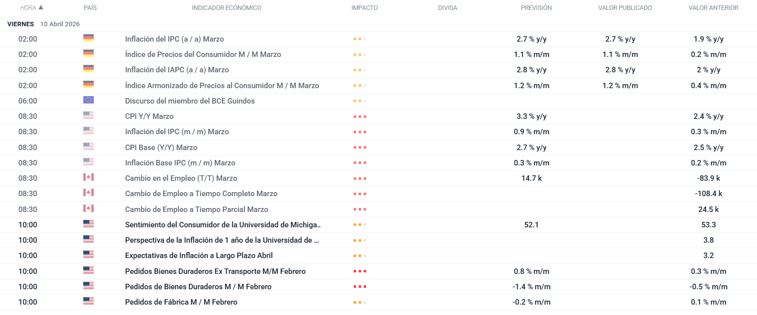 EE. UU.: El IPC de marzo mostró una moderación mayor a la esperada tanto en la lectura general como subyacente, reforzando las expectativas de que la inflación continúa desacelerándose de forma gradual. En paralelo, el panel bancario del Senado pospuso la audiencia de confirmación de Kevin Warsh prevista para la próxima semana debido a cuestiones de documentación pendiente.