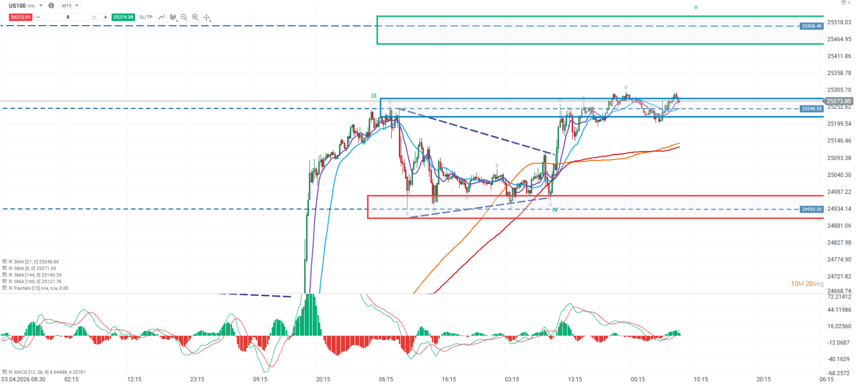 Una consolidación sostenida por sobre dicho nivel podría impulsar una extensión del movimiento al alza, a la zona de resistencia ubicada en torno a los 25.508 puntos. Por el contrario, una reversión que implique la pérdida de este nivel abriría espacio para el desarrollo de movimientos correctivos, donde el soporte más relevante se encuentra en las cercanías de los 24.933 puntos.