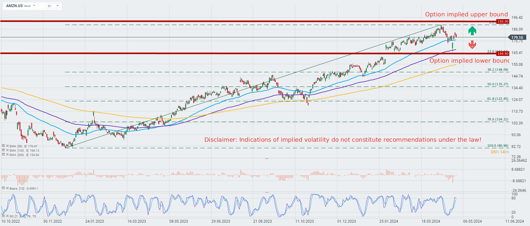 En el mercado en general, Amazon es visto como uno de los líderes en la implementación de herramientas de inteligencia artificial en sus procesos comerciales. Dada la dependencia del sentimiento del mercado de la adopción progresiva de este sector de la economía, podemos esperar que la reacción al desempeño de AWS induzca una alta volatilidad en las valoraciones de las acciones de la compañía después del cierre de las operaciones. Amazon cree que sus servicios de inteligencia artificial generativa basados en la nube pueden generar miles de millones en ingresos en los próximos años y ha invertido mucho en la tecnología para acelerar su desarrollo.