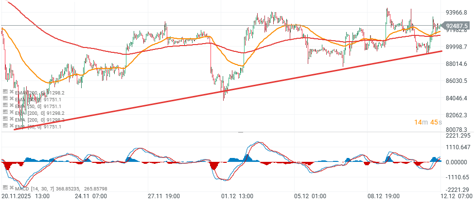 - El bitcoin se mantiene en un rango estrecho en torno a los 92.500$, lo que indica una lucha continua entre la oferta y la demanda en una zona clave. A pesar de los máximos históricos de la renta variable estadounidense, el bitcoin no ha logrado superar de forma sostenible la zona de los 94.000$.