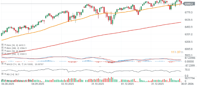 Los futuros de Estados Unidos caen mientras los inversores esperan la decisión del presidente Trump sobre el próximo presidente de la Reserva Federal. Los mercados están valorando cada vez más a Kevin Warsh como el candidato más probable, tras informaciones que apuntan a que podría ser la elección de Trump. Sin embargo, las bolsas europeas muestran un mejor comportamiento, con el DAX alemán subiendo casi un 0,5% (apoyado por un rebote del 4% en Adidas) y ligeras subidas en el FTSE británico y el Cac 40.
