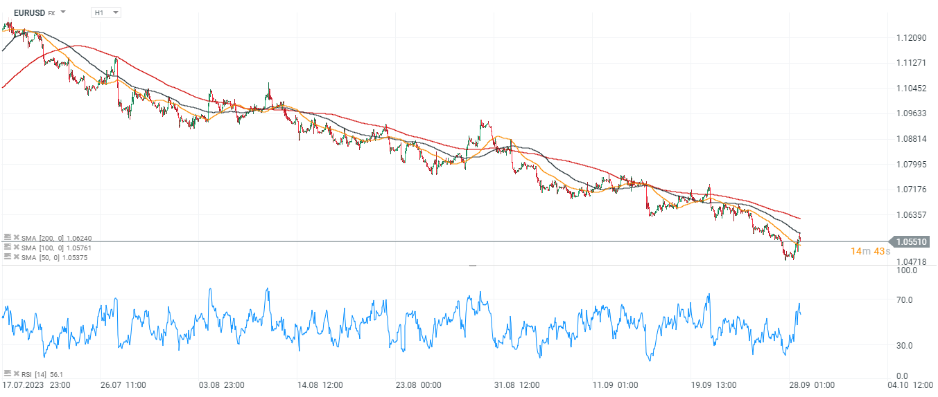 El EUR/USD alcanza la SMA de 100 (línea negra) donde puede enfrentar el primer nivel de oferta, pero la prueba más grande parece ser la SMA de 200 (línea roja) en el nivel 1.063. Romperla permitiría a los toros del eurodólar soñar con revertir la tendencia a medio plazo. Fuente: xStation5