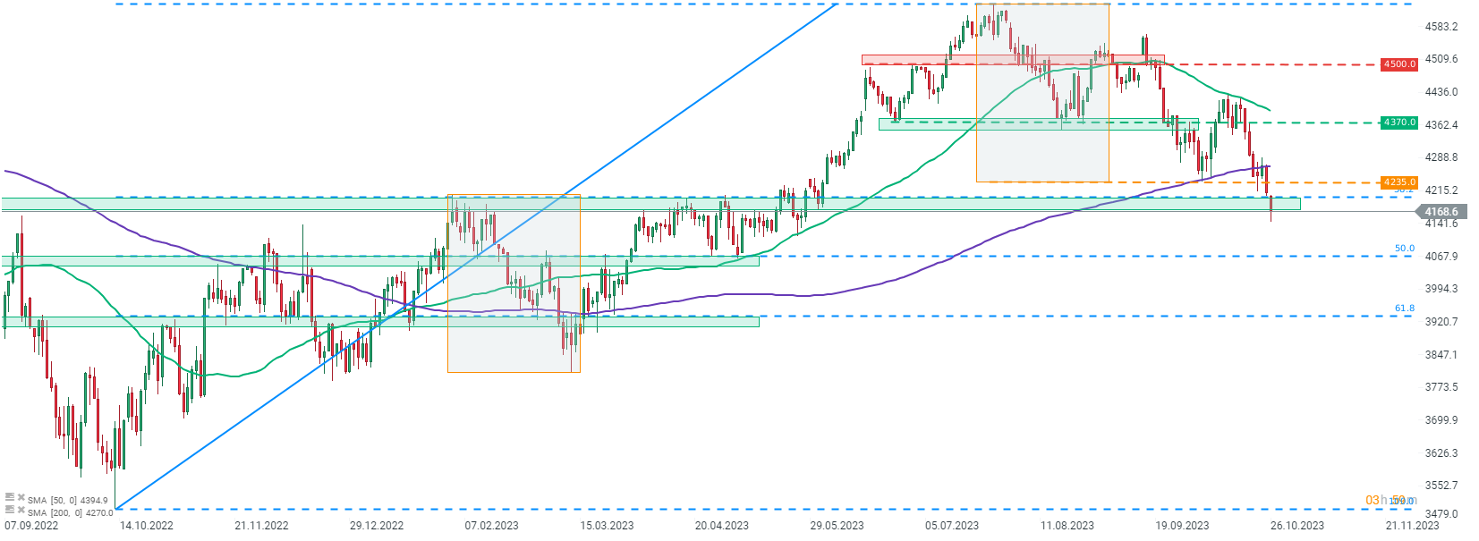 Los futuros del S&P 500 continuaron bajando después de romper ayer por debajo del límite inferior de la estructura Overbalance. Fuente: xStation5