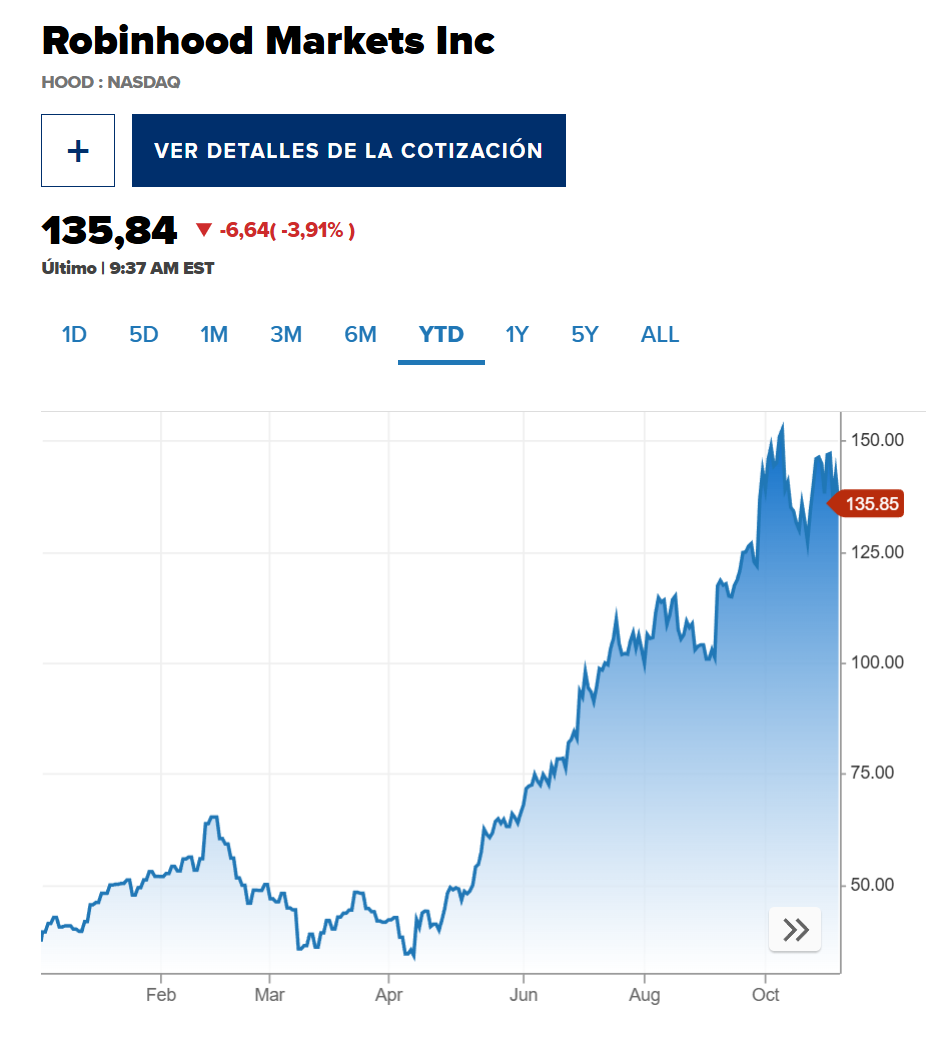 Robinhood continúa consolidándose como uno de los protagonistas más relevantes del sector tecnológico financiero en 2025. La compañía superó las expectativas de Wall Street para el tercer trimestre, impulsando una racha alcista que ha elevado su valorización y atractivo para los inversores.
