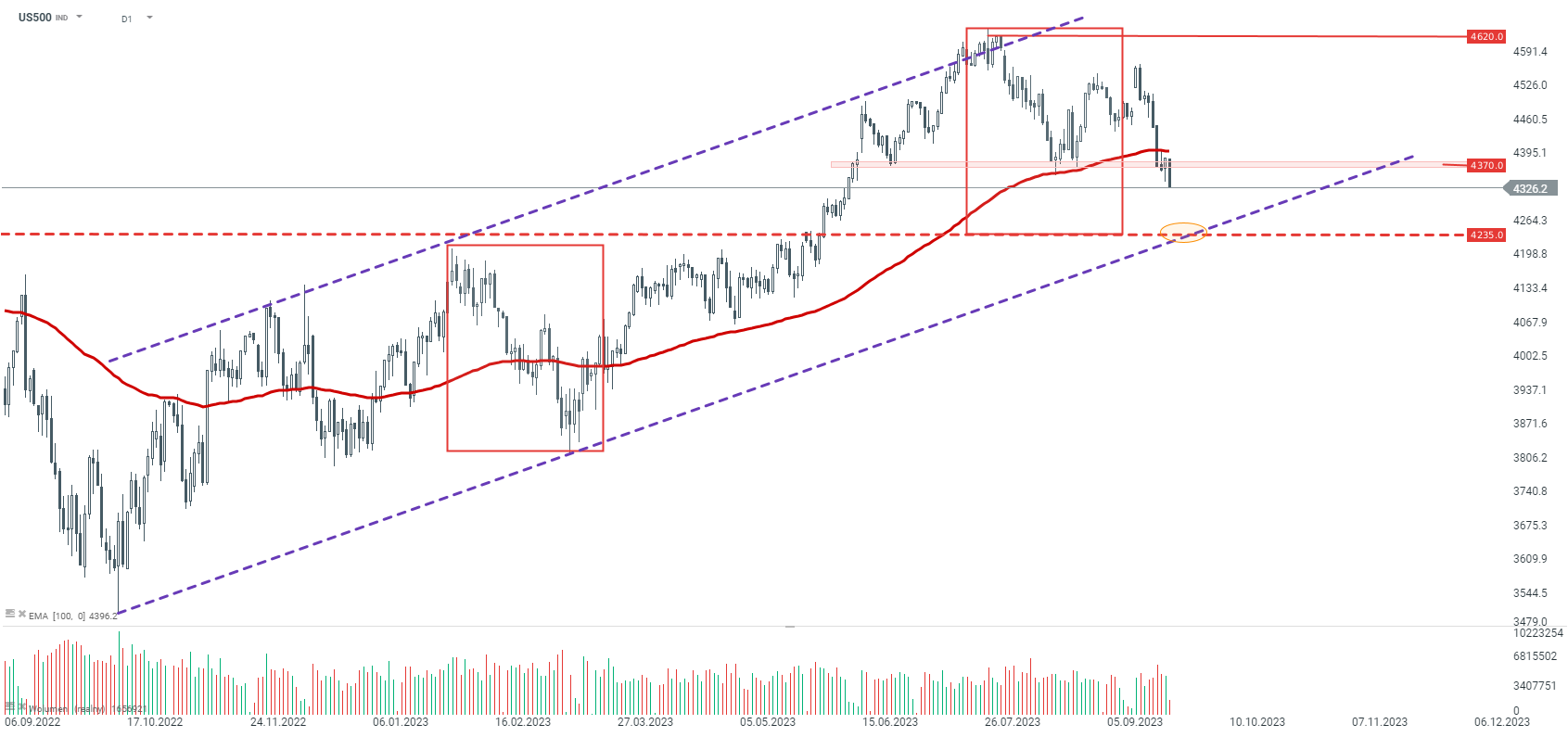 Los futuros del S&P 500, así como los demás índices estadounidenses, cotizan hoy bajo presión. Si bien el índice inició la sesión de efectivo de ayer a la baja y comenzó a recuperarse casi de inmediato, no se puede detectar ningún movimiento de recuperación después de la apertura de la sesión de efectivo de hoy. El S&P 500 cayó hoy a un nuevo mínimo de 3 meses y amenaza con ofrecer una ruptura decisiva por debajo de la zona de soporte de 4.370 pts. Superar este obstáculo allanaría el camino para que los vendedores prueben una resistencia clave a corto plazo en el área de 4,325 pts, donde se puede encontrar el límite inferior de la estructura Overbalance así como el límite inferior del canal ascendente.