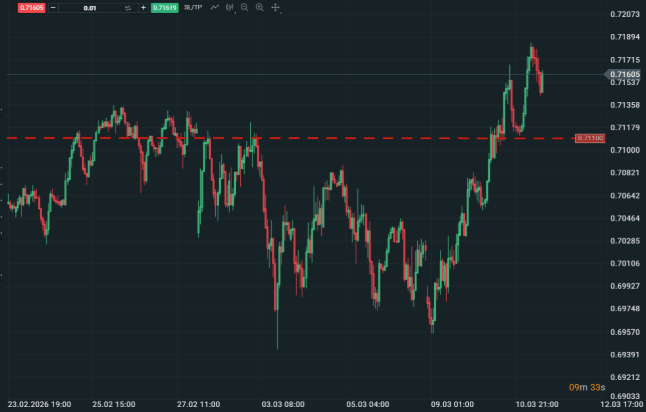Desde una perspectiva técnica, la estructura alcista permanece intacta mientras el par se mantenga por encima de 0,7110. Si estos niveles se mantienen, la tendencia alcista podría extenderse hacia 0,7300, especialmente si el RBA señala más endurecimiento monetario. Por el contrario, una caída por debajo de estos soportes —especialmente por debajo de 0,7057— sugeriría que la ruptura reciente fue falsa y que podría comenzar una corrección más profunda.