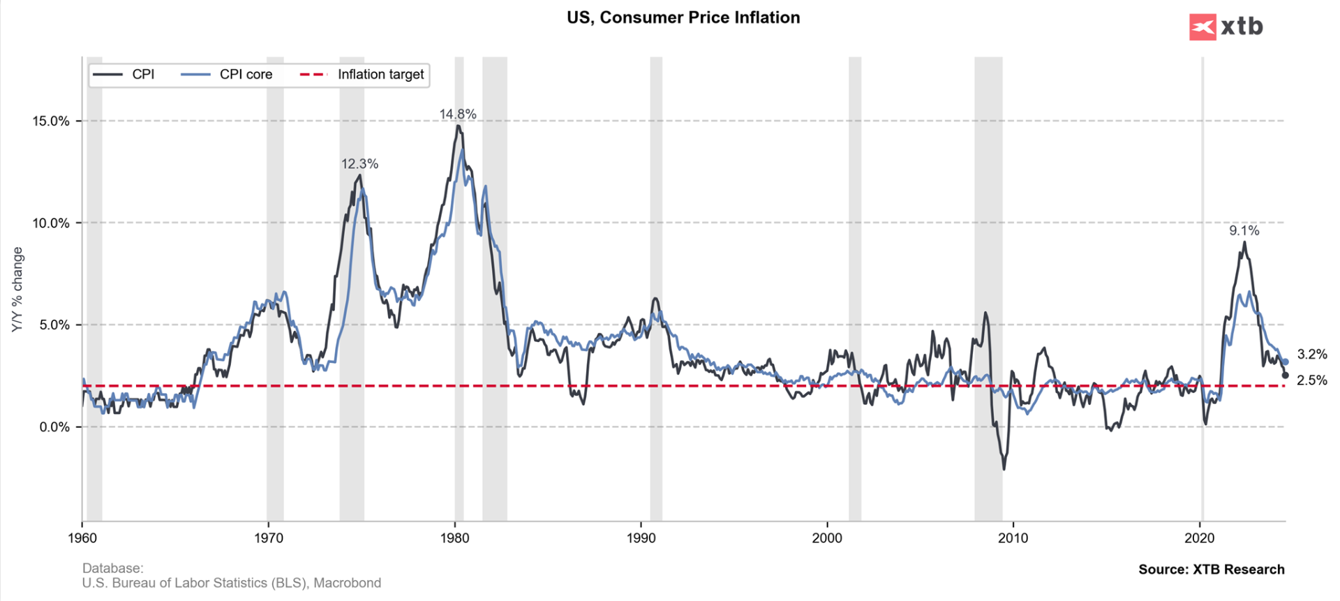 Los datos de inflación en Estados Unidos arrojaron resultados dispares. La inflación general se comporta de manera optimista y se encuentra en su nivel más bajo desde el inicio de los problemas inflacionarios. Sin embargo, la medición básica se ajusta a las expectativas en términos anuales y es ligeramente superior en términos mensuales. Tras la publicación de los datos, el mercado se inclina por un recorte de 25 puntos básicos en la reunión de septiembre de la Reserva Federal. En total, los inversores anticipan recortes de tasas de 100 puntos básicos este año.