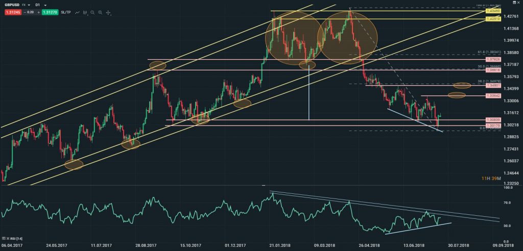La semana pasada comentamos que “el precio había encontrado una zona de soporte en 1.3060/1.3100 y que parecía estar estabilizándose. A corto plazo, esperaba un rebote hacia la zona de resistencia entre 1.3450 y 1.3500 para comenzar a abrir posiciones de venta. También comentamos que este escenario lo manteníamos vivo mientras no se produjeran cierres por debajo de 1.3000.” Pese a la sorpresa de la semana pasada con el dato de inflación en UK, de momento no se ha roto 1.3000. Además las divergencias alcistas siguen estando activas. Por tanto, mi visión no cambia. Solo me plantearía ventas en este activo, y empezaría a abrir las posiciones lentamente en 1.3360 dejando margen para vender más si el rebote se extiende hasta 1.3470/80.