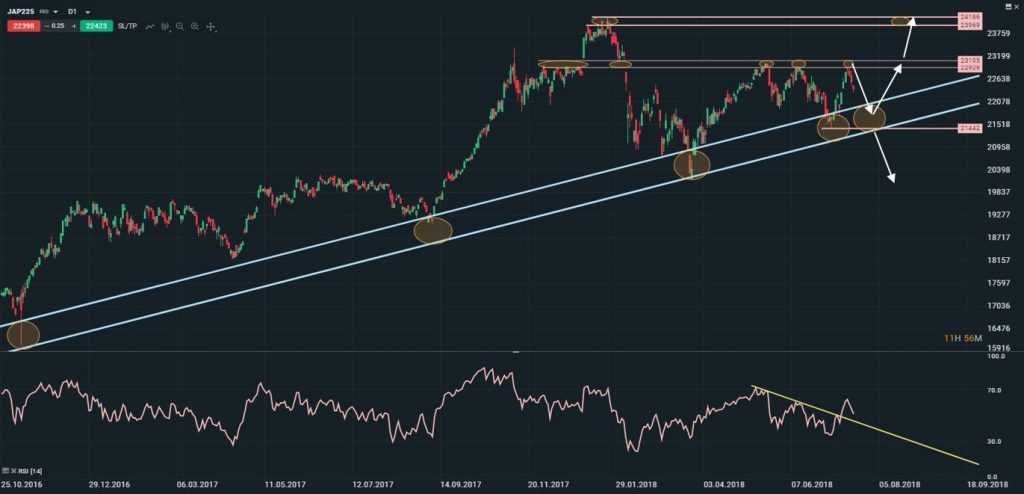 La semana pasada comentamos que “a corto plazo era probable que se produjese algún rechazo o corrección técnica, pero que aprovecharía para comprar la debilidad si el precio se aproximaba de nuevo a la línea de tendencia alcista de largo plazo. El próximo objetivo era 22950/23175.” Con una extensión adicional hasta 22920 hemos rozado nuestro segundo objetivo. Sin divergencias bajistas en los indicadores, ni formaciones bajistas, sigo pensando que la estructura principal sigue siendo claramente alcista a medio plazo y que hay que aprovechar apoyos en la directriz ascendente para comprar con stops por debajo de 21440.