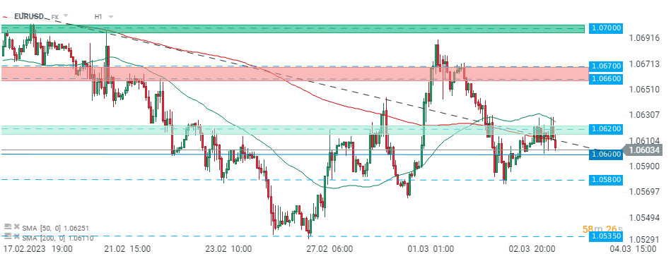 EURUSD fell slightly after today's ISM data. The pair again moves towards 1.0600 level. Source: xStation5