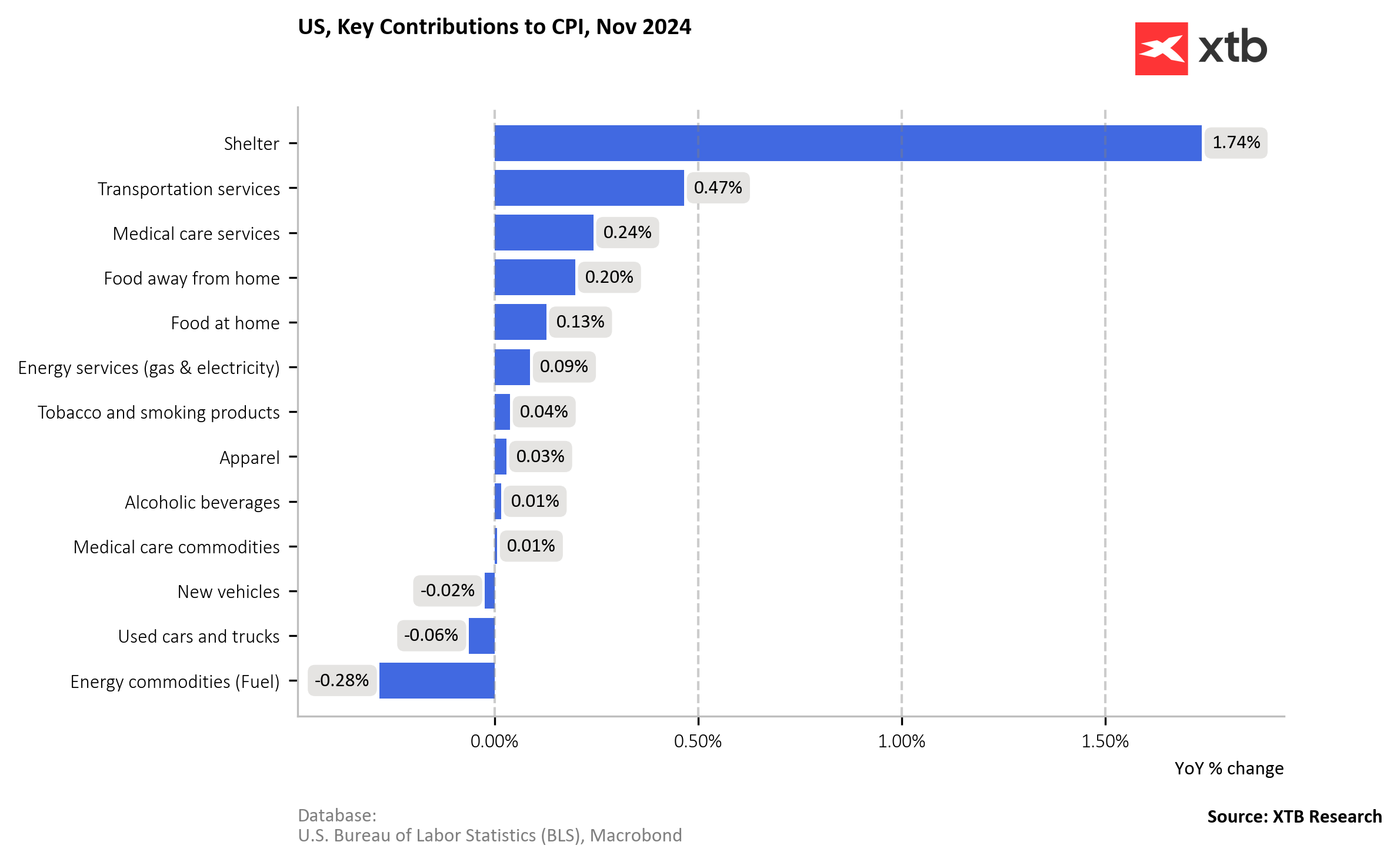 Looking at the YoY CPI components distribution, we can see, that the shelter remains the biggest positive contributor to the overall CPI pressure. Source: XTB