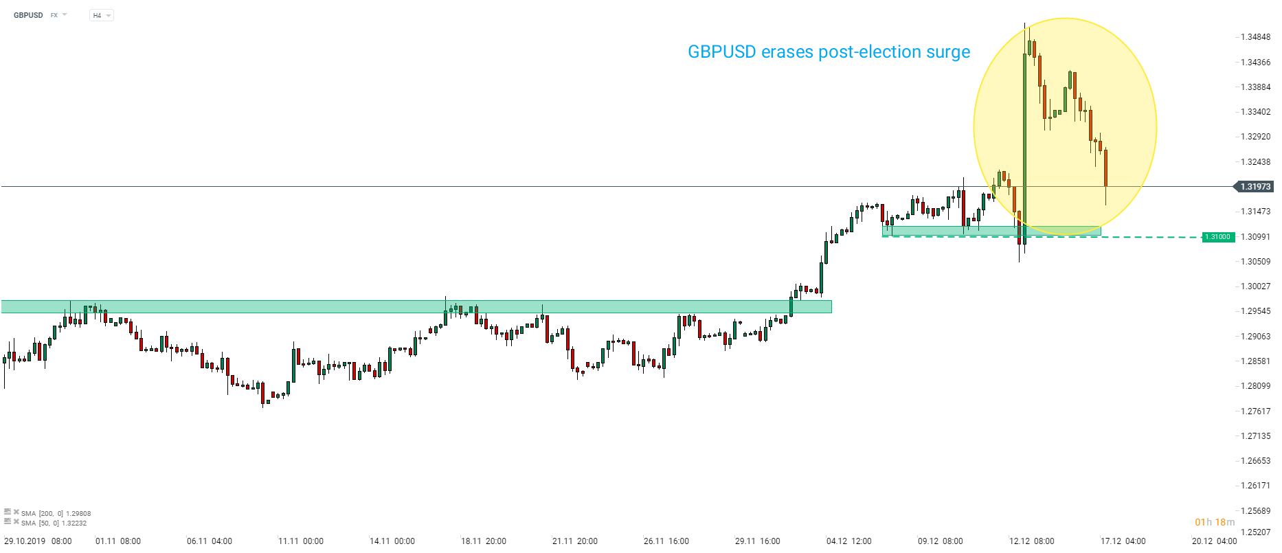 GBPUSD erases post-election surge and trade back near the 1.32 handle. Source: xStation5