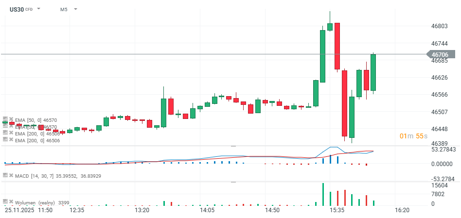 US30 reaction to data is mixed as investors seen this as a sign of almost 100% probable Fed rate cut in December. On the other hand, the US economy is slowing and CB index confirms that.