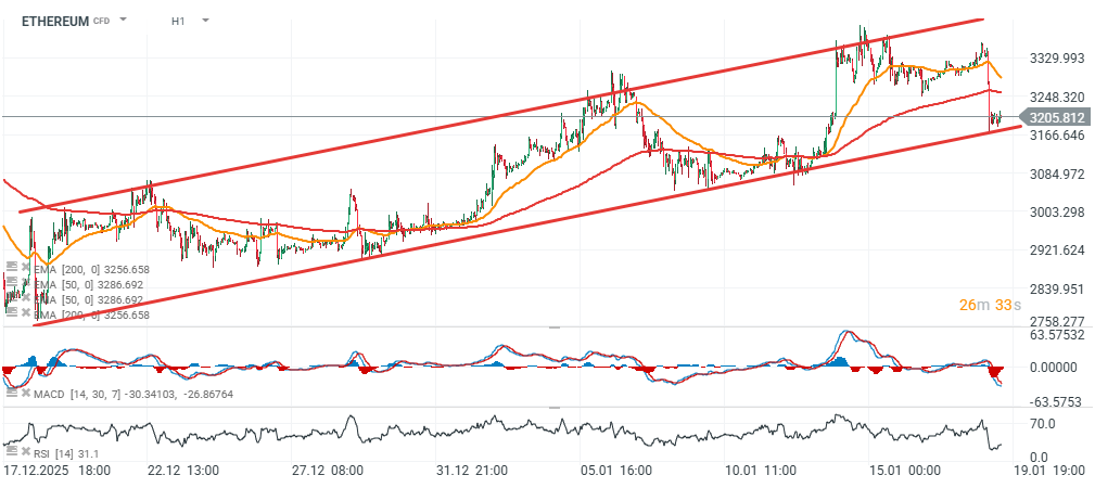 Looking at the two largest cryptocurrencies, on the hourly timeframe Bitcoin is currently holding a potential 1:1 corrective structure, which gives bulls some hope that $92,000 can hold as a key support level. On the other hand, Ethereum has pulled back to the lower boundary of its rising price channel, and the uptrend remains intact as long as the price does not fall below $3,200.