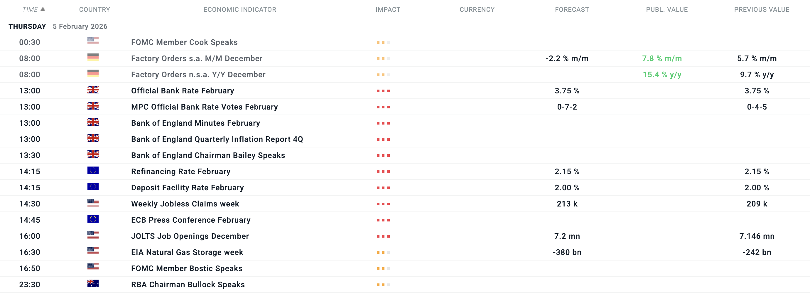 Thursday will be primarily shaped by central bank decisions in Europe. The Bank of England (BoE) will publish its interest rate decision at 12:00 PM GMT, followed by the European Central Bank (ECB) at 1:15 GMT.