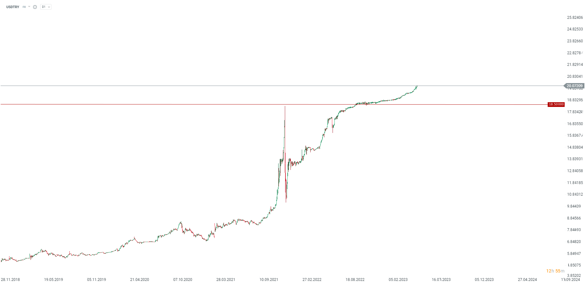 Turkish lira is weakening against USD and EUR this morning. Some financial institution expect around 30% drop in TRY value by the end of the year. Source: xStation5