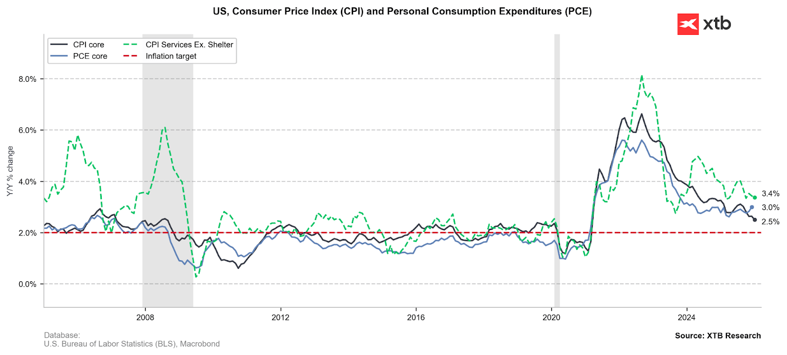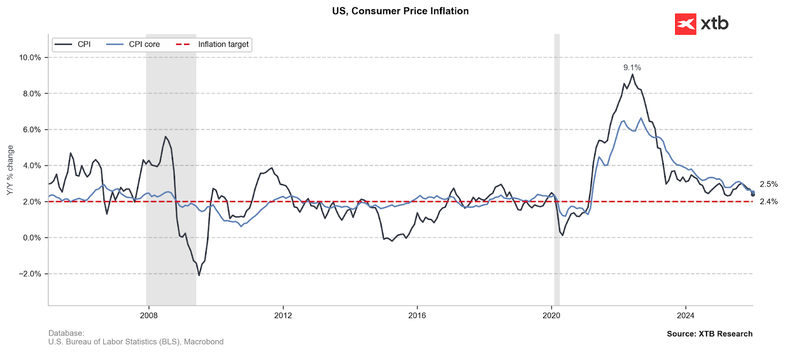 Analysts' consensus, which fluctuates around the latest reading, suggests relatively high uncertainty regarding price dynamics in the US, which still bears the statistical effects of the shutdown. Source: XTB Research, Macrobond data