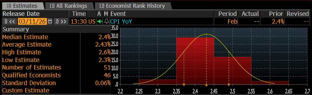 Breakdown of analysts' expectations for today's CPI report. Source: Bloomberg Financial No.
