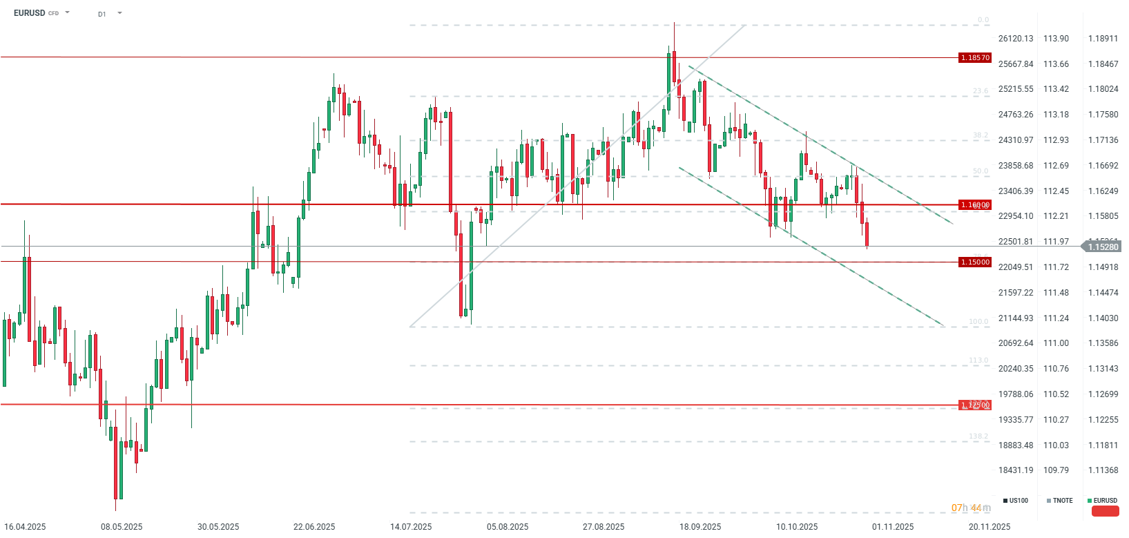 EURUSD has fallen to its lowest level since early August and is heading towards 1.1500.