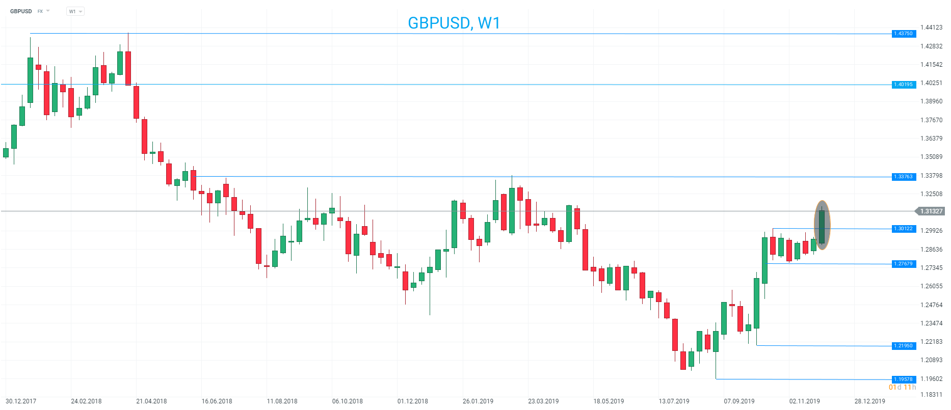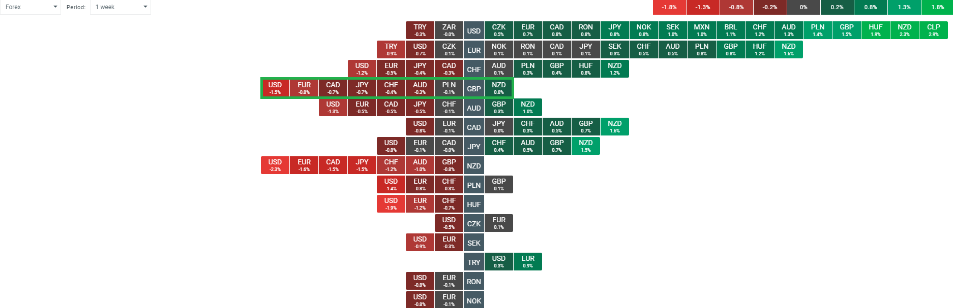 Only the NZD has outperformed GBP in the past week, with the largest gains seen against the USD with GBPUSD up by 1.5% on the week. Source: xStation
