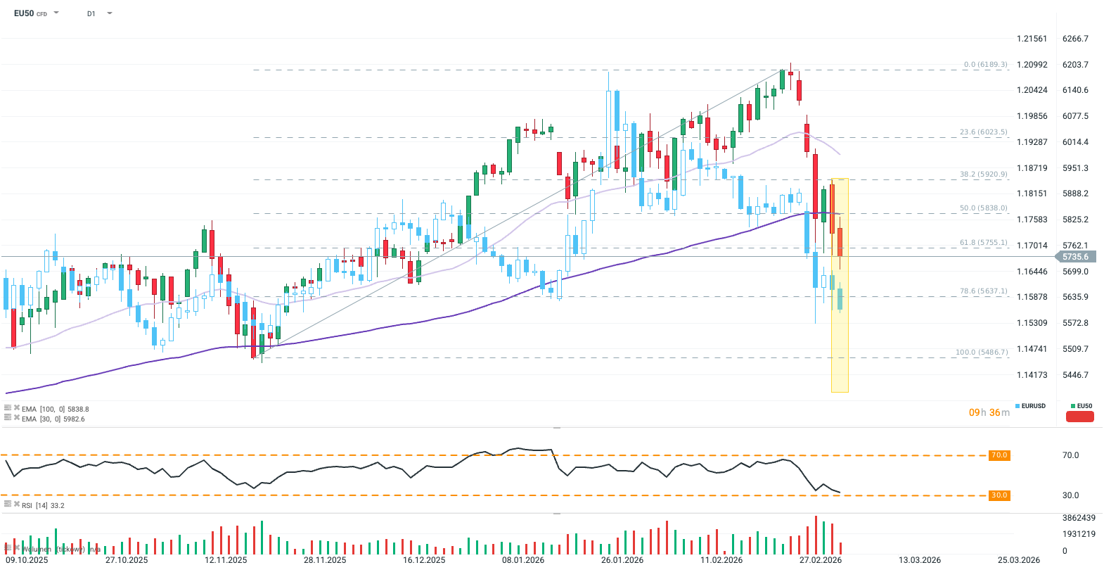 EU50 is at its lowest since December 2025, while EURUSD deepens losses below 1,1600 mark. Source: xStation5