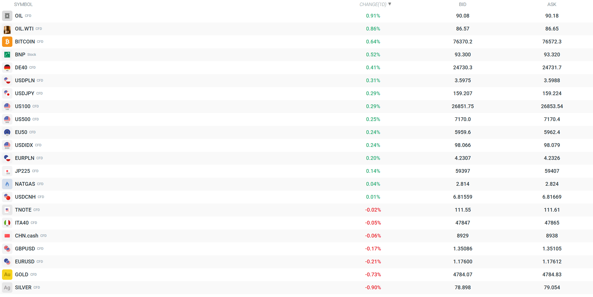 That is why today’s rebound is rather moderate and resembles selective unwinding of bearish positions more than a strong risk-on move. In the currency market, the dollar is strengthening slightly, with the USDIDX index up 0.25%, while EURUSD is down 0.23%, indicating that some capital remains on the defensive side of the market. Oil is holding up relatively well, with Brent and WTI prices rising by 1.08% and 0.99%, respectively, though the broader narrative continues to revolve around possible progress in peace talks. The best performers today are technology, utilities, energy, and financials, which are up 0.96%, 0.91%, 0.61%, and 0.59%, respectively.