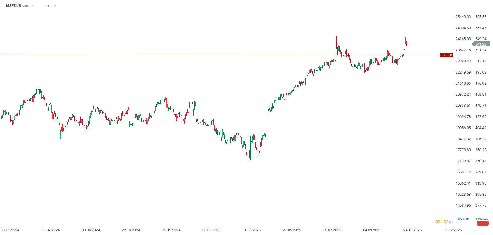 Microsoft delivered solid results, surpassing consensus on revenue, operating profit, and EPS. Azure's 39% growth (above the 37% forecast) confirms the strength of the cloud platform. However, the market appears to be penalising the company for the lack of clear indication on how its past investments will translate into greater future profits. Furthermore, emerging competition in the cloud infrastructure segment raises question marks for one of the market leaders. Nevertheless, it must be acknowledged that the company's prospects for continued growth and development remain extremely strong.