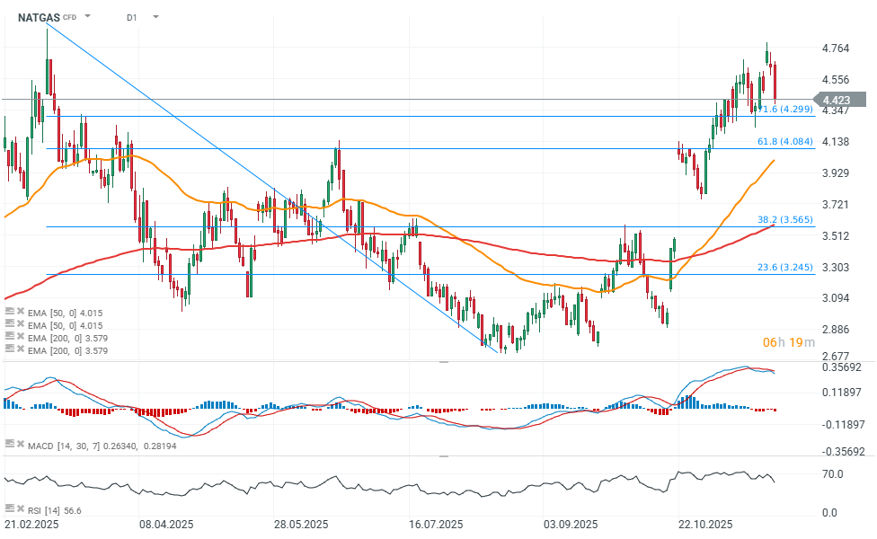 Futures on US natural gas Henry Hub (NATGAS) drop today amid improving weather forecasts across the United States, signalling warmer weather and weaker demand on heating.
